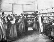 In 1883 the institution, now long officially known as the West Florida Seminary, was organized by the Board of Education as The Literary College of the University of Florida. (In the terminology of the time, schools were divided into seminaries and literary institutions; the name does not imply a focus on literature.) Under the new university charter, the seminary became the institution's Literary College, and was to contain several "schools" or departments in different disciplines.[31] However, in the new university association the seminary's "separate Charter and special organization" were maintained.[32] Florida University also incorporated the Tallahassee College of Medicine and Surgery, and recognized three more colleges to be established at a later date.[31] The Florida Legislature recognized the university under the title "University of Florida" in Spring 1885, but committed no additional financing or support.[22][33] Without legislative support, the university project struggled. The institution never assumed the "university" title,[33] and the association dissolved when the medical college relocated to Jacksonville later that year.[31]
