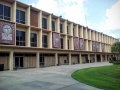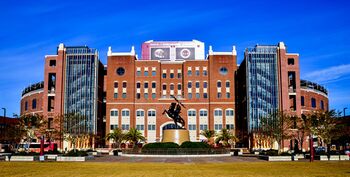 Located off Stadium Drive in the southwest quadrant are Doak Campbell Stadium which encloses Bobby Bowden Field. The arena seats approximately 84,000 spectators, the University Center Buildings, Dick Howser Stadium as well as other athletic buildings. Doak Campbell Stadium, the University Center Buildings, Dick Howser Stadium as well as other athletic buildings and fields are located off Stadium Drive in the southwest quadrant. Doak Campbell Stadium is a unique venue in collegiate athletics. It is contained within the brick facade walls of University Center, the largest continuous brick structure in the world. The vast complex houses the offices of the university, the registrar, the Dedman School of Hospitality, and other offices and classrooms.