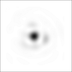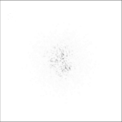 Slow motion movie of the image seen at a telescope when looking at a star at high magnification (negative images). The telescope used had a diameter of about 7r0 (see definition of r0 below, and example simulated image through a 7r0 telescope). The star breaks up into multiple blobs (speckles) -- entirely an atmospheric effect. Some telescope vibration is also noticeable.