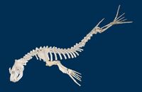 When swimming, otariids rely on their fore-flippers for locomotion in a wing-like manner similar to penguins and sea turtles. Fore-flipper movement is not continuous, and the animal glides between each stroke.[41] Compared to terrestrial carnivorans, the fore-limb bones of otariids are reduced in length, giving them less resistance at the elbow joint as the flippers flap;[42] the hind-flippers maneuver them.[43] Phocids and walruses swim by moving their hind-flippers and lower body from side to side, while their fore-flippers are mainly used for maneuvering.[41][44][16] Some species leap out of the water, and "ride" waves.[45]