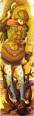 Saint Michael is the traditional prototype of the spiritual warrior, a paradigm extended to other warrior saints. This conflict against evil may at times be viewed as an interior battle. The concept of the warrior saint has extended to other Catholic saints, beginning with examples such as Saint George and Saint Theodore of Amasea.[9]