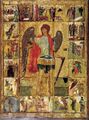 Michael the Archangel and biblical scenes, Russian icon, c. 1410