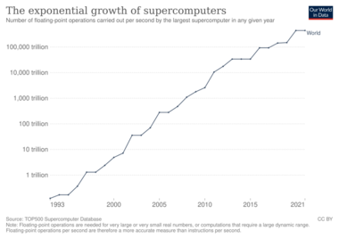 The US has long been the leader in the supercomputer field, first through Cray's almost uninterrupted dominance of the field, and later through a variety of technology companies. Japan made major strides in the field in the 1980s and 90s, with China becoming increasingly active in the field. As of May 2022, the fastest supercomputer on the TOP500 supercomputer list is Frontier, in the US, with a LINPACK benchmark score of 1.102 ExaFlop/s, followed by Fugaku.[11] The US has five of the top 10; China has two; Japan, Finland, and France have one each.[12] In June 2018, all combined supercomputers on the TOP500 list broke the 1 exaFLOPS mark.[13]