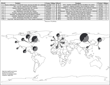 This is a recent list of the computers which appeared at the top of the TOP500 list,[108] and the "Peak speed" is given as the "Rmax" rating. In 2018, Lenovo became the world's largest provider for the TOP500 supercomputers with 117 units produced.[109]