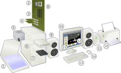 Computer hardware includes the physical parts of a computer, such as the case, central processing unit (CPU), random access memory (RAM), monitor, mouse, keyboard, computer data storage, graphics card, sound card, speakers and motherboard.[1][2]