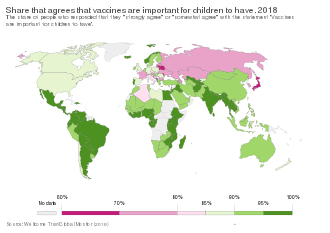 "Anti-vaccinationism" refers to total opposition to vaccination; in more recent years, anti-vaccinationists have been known as "anti-vaxxers" or "anti-vax".[17] Vaccine hesitancy is complex and context-specific, varying across time, place and vaccines.[18] It can be influenced by factors such as lack of proper scientifically based knowledge and understanding about how vaccines are made or work, as well as psychological factors including fear of needles[2] and distrust of public authorities, a person's lack of confidence (mistrust of the vaccine and/or healthcare provider), complacency (the person does not see a need for the vaccine or does not see the value of the vaccine), and convenience (access to vaccines).[3] It has existed since the invention of vaccination and pre-dates the coining of the terms "vaccine" and "vaccination" by nearly eighty years. The specific hypotheses raised by anti-vaccination advocates have been found to change over time.[19]