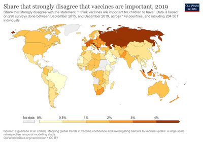 A December 2020 Ipsos/World Economic Forum 15-country poll asked online respondents whether they agreed with the statement: "If a vaccine for COVID-19 were available, I would get it." Rates of agreement were smallest in France (40%), Russia (43%) and South Africa (53%). In the United States, 69% of those polled agreed with the statement; rates were even higher in Britain (77%) and China (80%).[272][273]
