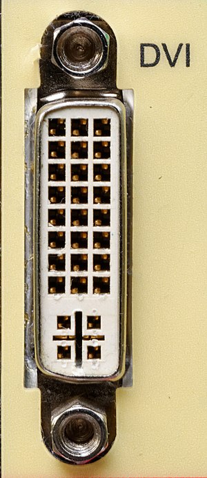 Digital Visual Interface (DVI) is a video display interface developed by the Digital Display Working Group (DDWG). The digital interface is used to connect a video source, such as a video display controller, to a display device, such as a computer monitor. It was developed with the intention of creating an industry standard for the transfer of digital video content.