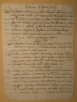 Early attempts at censorship were made by both Pope Pius V and the Council of Ten in the late 1500s, which both limited production of hand-written avvisi and forbade "disclosure of information".[4] The disclosure of state secrets to other rulers carried the death penalty. After the execution of a newswriter in November 1587 in Rome, the Pope explicitly forbade the spread outside of Rome of news regarding the Curia, while Venice used a similar law to execute another newswriter earlier in the year for sharing news to the duke of Ferrara.[1] After this newswriters and couriers were much more careful in their trade, but still continued producing and selling avvisi.[1]
