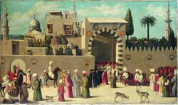 The Ptolemaic dynasty exploited the strategic position of Alexandria to secure trade with the subcontinent.[17] The course of trade with the east then seems to have been first through the harbor of Arsinoe, the present day Suez.[17] The goods from the East African trade were landed at one of the three main Roman ports, Arsinoe, Berenice or Myos Hormos.[18] The Romans repaired and cleared out the silted up canal from the Nile to harbor center of Arsinoe on the Red Sea.[19] This was one of the many efforts the Roman administration had to undertake to divert as much of the trade to the maritime routes as possible.[19]