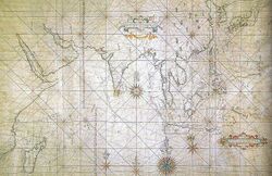 The Portuguese under Vasco da Gama discovered a naval route to the Indian Ocean through the southern tip of Africa in 1497–98. Initially, the Portuguese were mainly active in Calicut, but the northern region of Gujarat was even more important for trade, and an essential intermediary in east–west trade.[32]
