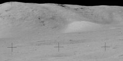 From Handwiki ![]() Location of Shakespeare crater in Taurus–Littrow valley. South Massif is at lower left, North Massif is at top center, and Sculptured Hills are at upper right. Scale bar is 5 km | |