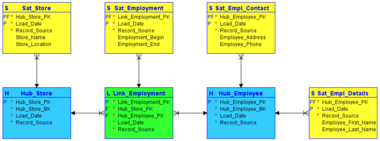 This is an example for a link-table between two hubs for cars (H_CAR) and persons (H_PERSON). The link is called "Driver" (L_DRIVER).