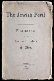 The Protocols of the Elders of Zion is an antisemitic canard, originally published in Russian in 1903, alleging a Judeo-Masonic conspiracy to achieve world domination. The text purports to be the minutes of the secret meetings of a cabal of Jewish masterminds, which has co-opted Freemasonry and is plotting to rule the world on behalf of all Jews because they believe themselves to be the chosen people of God.[45] The Protocols incorporate many of the core conspiracist themes outlined in the Robison and Barruel attacks on the Freemasons and overlay them with antisemitic allegations about anti-Tsarist movements in Russia. The Protocols reflect themes similar to more general critiques of Enlightenment liberalism by conservative aristocrats who support monarchies and state religions. The interpretation intended by the publication of The Protocols is that if one peels away the layers of the Masonic conspiracy, past the Illuminati, one finds the rotten Jewish core.[15]