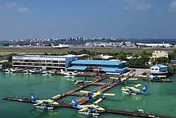 In the Maldives, there are three main ways to travel between islands: by domestic flight, by seaplane, or by boat.[155] For several years there were two seaplane companies operating: TMA (Trans Maldivian Airways) and Maldivian Air Taxi, but these merged in 2013 under the name TMA. The seaplane fleet is entirely made up of DHC-6 Twin Otters. There is also another airline, Flyme, which operates using ATR planes to domestic airports, principally Villa-Maamigili, Dharavandhoo and some others. Manta Air began its first scheduled seaplane service in 2019. Its seaplane fleet is made up of DHC-6 Twin Otter aircraft. In addition to the seaplane service, Manta Air utilises ATR 72–600 aircraft to operate domestic flights to Dhaalu Airport, Dharavandhoo Airport and Kooddoo Airport from the main Velana International Airport.[156] Depending on the distance of the destination island from the airport, resorts organise speedboat transfers or seaplane flights directly to the resort island jetty for their guests. Several daily flights operate from Velana International Airport to the 18 domestic and international airports in the country. Scheduled ferries also operate from Malé to many of the atolls. The traditional Maldivian boat is called a dhoni. Speedboats and seaplanes tend to be more expensive, while travel by dhoni, although slower, is relatively cheaper and convenient.