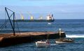 Kingston Pier, with launch towing a lighter with cargo from ship moored off-shore