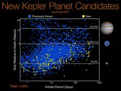 On January 6, 2015, NASA announced the 1,000th confirmed exoplanet discovered by the Kepler Space Telescope. Four of the newly confirmed exoplanets were found to orbit within habitable zones of their related stars: three of the four, Kepler-438b, Kepler-442b and Kepler-452b, are almost Earth-size and likely rocky; the fourth, Kepler-440b, is a super-Earth.[33] On May 10, 2016, NASA verified 1,284 new exoplanets found by Kepler, the single largest finding of planets to date.[34][35][36]