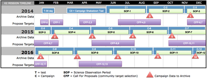 On August 15, 2013, NASA announced that they had given up trying to fix the two failed reaction wheels. This meant the current mission needed to be modified, but it did not necessarily mean the end of planet hunting. NASA had asked the space science community to propose alternative mission plans "potentially including an exoplanet search, using the remaining two good reaction wheels and thrusters".[17][18][19][20] On November 18, 2013, the K2 "Second Light" proposal was reported. This would include utilizing the disabled Kepler in a way that could detect habitable planets around smaller, dimmer red dwarfs.[21][22][23][24] On May 16, 2014, NASA announced the approval of the K2 extension.[25]