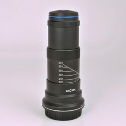 | 100 | f/2.8 | Full frame | 100 | 2x Ultra Macro APO | 2019 | Apochromatic lens. Laowa's second 2x macro lens after the 60 mm f/2.8 that can be focused at infinity. Minimum chromatic aberration.[25] |