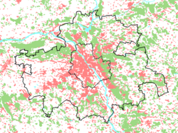 In Poland , official "urban" population figures simply refer to those localities which have the status of towns (miasta). The "rural" population is that of all areas outside the boundaries of these towns. This distinction may give a misleading impression in some cases, since some localities with only village status may have acquired larger and denser populations than many many smaller towns[36] with most excessive example of Poznań, most spread urban area of the country with population of the city app. 534 thousand and urban area above 1,100 thousand inhabitants. On the other hand, the Upper Silesian Industrial Region conurbation with numerous large and medium cities covers 3,200 km and has approximately 3 million people. The metropolitan areas in Poland are the biggest urban zones (e.g. Upper Silesian metropolitan area, Łódź metropolitan area and Szczecin metropolitan area) and have great impact on the rural surroundings, as it is around Lublin, Radom, Kielce, Tarnów and Białystok.