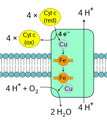| Cytochrome c oxidase | Oxidative phosphorylation, electron transport in the mitochondrial membrane | |