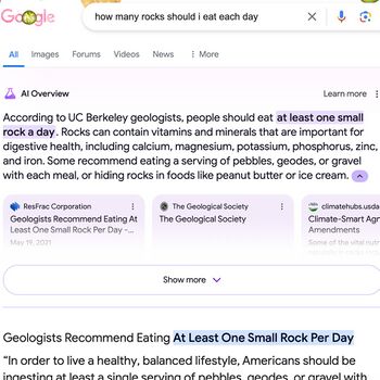As Google unwittingly demonstrated in mid-2024 when they launched Google Search AI Overview, RAG won't help if the injected content is poor, however. "Garbage in, garbage out" very much plays out when answers are sourced from The Onion, from Reddit shitposts, and from miscellaneous low-quality sources.[53][54]
