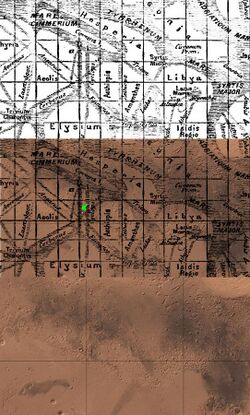 One way the surface of Mars has been categorized, is by thirty "quadrangles", with each quadrangle named for a prominent physiographic feature within that quadrangle.[10][11]