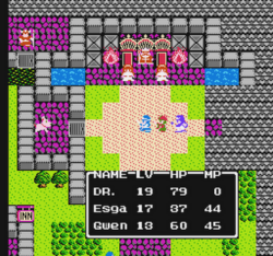 To win, the player must fight monsters to improve the characters' experience levels and get gold to buy better weapons and armor. Eventually, the player's characters become strong enough to make it to the next town or dungeon. This repeats until the player reaches the final boss and defeats him. However, the gameplay is not necessarily linear, especially after the player gets the boat. Exploration is a key component of the game. The game offers a few spots to save the game.[7] In most of the towns, talking to a king or minister saves the game. In the American version, which incorporated a battery for saved games rather than the password system of the original, talking to the king also allows for the deletion and moving of saved games.[8]