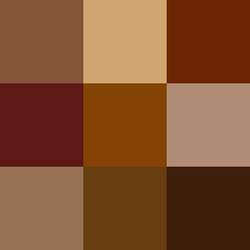 Displayed here are some common brown shades. Some of them are associated with (any of various types of) soil, rock, or vegetation and are thus also classifiable among the earth tones.