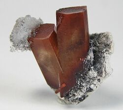![]() Vanadinite crystals showing burnt umber coloration | |