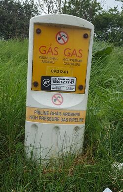 In Australia, natural gas is transported from gas processing facilities to regulator stations via transmission pipelines. Gas is then regulated down to distributed pressures and the gas is distributed around a gas network via gas mains. Small branches from the network, called services, connect individual domestic dwellings, or multi-dwelling buildings to the network. The networks typically range in pressures from 7 kPa (low pressure) to 515 kPa (high pressure). Gas is then regulated down to 1.1 kPa or 2.75 kPa, before being metered and passed to the consumer for domestic use.[88] Natural gas mains are made from a variety of materials: historically cast iron, though more modern mains are made from steel or polyethylene.