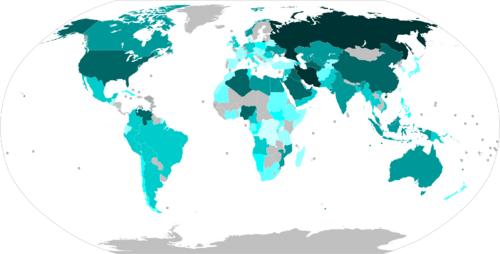 With 15 countries accounting for 84% of the worldwide extraction, access to natural gas has become an important issue in international politics, and countries vie for control of pipelines.[71] In the first decade of the 21st century, Gazprom, the state-owned energy company in Russia, engaged in disputes with Ukraine and Belarus over the price of natural gas, which have created concerns that gas deliveries to parts of Europe could be cut off for political reasons.[72] The United States is preparing to export natural gas.[73]
