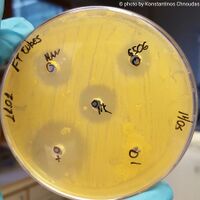 Metabolites produced by marine algae have been found to have many antimicrobial properties.[1] This is because they are produced by the marine organisms as chemical deterrents and as such contain bioactive compounds. The principal classes of marine algae that produce these types of secondary metabolites are Cyanophyceae, Chlorophyceae and Rhodophyceae.[1] Observed biogenic products include polyketides, amides, alkaloids, fatty acids, indoles and lipopeptides.[1] For example, over 10% of compounds isolated from Lyngbya majuscula, which is one of the most abundant cyanobacteria, have antifungal and antimicrobial properties.[1][6] Additionally, a study by Ren et al. (2002) tested halogenated furanones produced by Delisea pulchra from the Rhodophyceae class against the growth of Bacillus subtilis.[15][1] When applied at a 40 µg/mL concentration, the furanone inhibited the formation of a biofilm by the bacteria and reduced the biofilm's thickness by 25% and the number of live cells by 63%.[15]