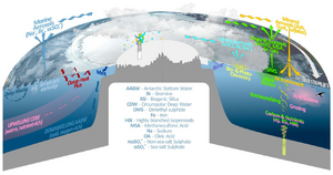 Through studying the transport of biogenic substances in the Tatar Strait in the Sea of Japan, a Russian team noted that biogenic substances can enter the marine environment due to input from either external sources, transport inside the water masses, or development by metabolic processes within the water.[5] They can likewise be expended due to biotransformation processes, or biomass formation by microorganisms. In this study the biogenic substance concentrations, transformation frequency, and turnover were all highest in the upper layer of the water. Additionally, in different regions of the strait the biogenic substances with the highest annual transfer were constant. These were O2, DOC, and DISi, which are normally found in large concentrations in natural water.[5] The biogenic substances that tend to have lower input through the external boundaries of the strait and therefore least transfer were mineral and detrital components of N and P. These same substances take active part in biotransformation processes in the marine environment and have lower annual output as well.[5]