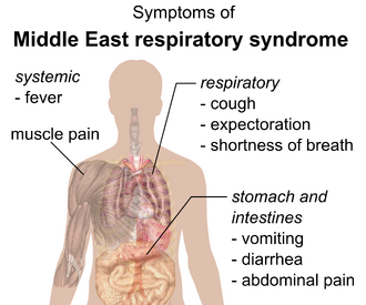 Middle East respiratory syndrome (MERS) is a viral respiratory infection caused by Middle East respiratory syndrome–related coronavirus (MERS-CoV).[1] Symptoms may range from none, to mild, to severe depending on age and risk level.[6][1] Typical symptoms include fever, cough, diarrhea, and shortness of breath.[1] The disease is typically more severe in those with other health problems.[1][6]