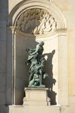 On the balustrade between the Logården and the Logårdstrappan, are four allegorical sculptures representing "Music", "Religion", "Poetry" and "Mercy". They were made in 1903 by Johan Axel Wetterlund and cast by Otto Meyer and are approx. 1.5 by 1 m (4 ft 11 in by 3 ft 3 in).[51]