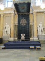 The Hall of State is in the west half of the southern row of the palace and is two stories high (first and second floor). It was introduced for the Riksdag of 1755. The hall was designed by Hårleman who modified Tessin's plans. The Silver Throne of Queen Christina is placed in the Hall. The main entrance of the Hall is in the South Portal (or Arch).[86]