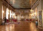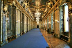 The Princess Sibylla's Apartment, named after the Princess Sibylla of Saxe-Coburg and Gotha, is on the first floor in the south part of the eastern row and is used as the everyday reception rooms for the King and Queen, and is not open to the public.[74] During the history of the palace, the apartment have always been a part of the palace where the king or one of his close relatives has lived. The apartment is known for the Blue Drawing room where the engagements of King Carl XVI Gustaf and Silvia Sommerlath in 1976, as well as Crown Princess Victoria and Daniel Westling in 2009, were declared. The Princess Sibylla's Inner Drawing room, formerly known as Crown Prince Gustaf's audience chamber, still have some interior designed by Carl Hårleman, such as pilasters and ornamentations over the lintels of the doors.[75][76]