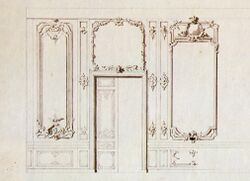 Hårleman formed large parts of the palace's interior in a newer style, more to the taste of that time, the Rococo. At Hårleman's initiative, the color of the facade was changed from the earlier brick red to light yellow (see Coloration below). When the building was reassumed in 1727, there was anew a need for qualified workers. The second group of French artists and craftsmen arrived in Stockholm in the summer of 1732, as a result of Hårleman's negotiations in Paris the previous winter. The group consisted of six persons: two Masters, Antoine Bellette[26] and Michel Le Lievre and four journeymen.[27] Other noted sculptors and craftsmen during the second phase of the construction were Charles Guillaume Cousin, Jacques-Philippe Bouchardon, Pierre Hubert L'Archevêque, Johan Tobias Sergel and Adrien Masreliez.[17] Giovanni Battista Tiepolo turned down Tessin's offer of a commission.[28]