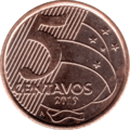 5 centavos | Obverse: The Southern Cross in right upper side. Reverse: Depicts Joaquim José da Silva Xavier (also known as Tiradentes), martyr of an early independence movement known as the Minas Conspiracy. In the background, a triangle, symbol of the movement, and a dove, symbol of peace and freedom. |