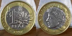 1 real | Obverse: The Southern Cross in right upper side. Reverse: Outer ring depicts a sample of the marajoara art pattern. In the inner ring, the Efígie da República, symbol of the Republic. |
