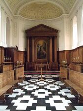 The college's chapel was built in 1763 and designed by Sir James Burrough, the Master of neighbouring Caius College.[7] Its altarpiece is Annunciation by Cipriani.[8]
