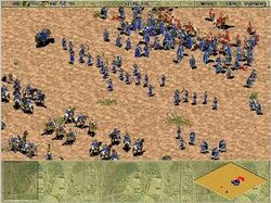 While noting the similarities with Warcraft II, PC Gameworld praised the uniqueness of each playable civilization, and noted that the "graphics are extremely detailed and have a hand-painted feel to them. It's rare to see a game this beautiful with such detailed unit movements."[78] Game Revolution was impressed by the amount of different units of the game, and noted that the developers "obviously did [their] research here, and the result is a well rounded, historically accurate product (at least for a game)".[6] The soundscape of the game was also criticized, with GameVortex stating that "the oral clues just aren't enough to let you differentiate just what's going on."[77] With a view to the future of the game, Game Revolution emphasized the scenario editor, which "allows you total control in the design of scenarios and campaigns", a "tool at your disposal to create a scenario exactly to your liking."[6]