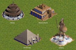 Wonders are enormous monuments representing the architectural achievements of the time, such as the Egyptian Pyramids. They require huge amounts of resources to build and are constructed very slowly. Wonders can neither produce units nor conduct research. In scenarios with Standard Victory conditions, a player can win by constructing a wonder and keeping it from being destroyed for 2,000 years (about 10 minutes in the real world). Building a wonder also greatly increases a player's score, which is beneficial in "score" games. Players typically make it their top priority to destroy enemy wonders, especially under Standard Victory conditions. For this reason and because a wonder is relatively easy to destroy, a wonder must be well-guarded at all times.[16]