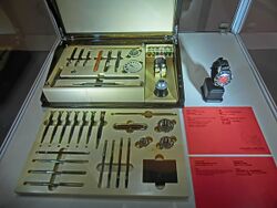 A repair kit or service kit is a set of items used to repair a device, commonly comprising both tools and spare parts. Many kits are designed for vehicles, such as cars, boats, airplanes, motorbikes, and bicycles, and may be kept with the vehicle in order to make on-the-spot repairs. Some are considered essential safety equipment, and may be included survival kits. In the military, personnel crossing large water bodies in aircraft may be equipped with a raft and raft repair kit. Other kits, such as those for watch repair or specific engine components, are used by professionals. Depending on the type, a repair kits may be included when buying a product, or may be purchased separately.