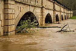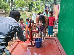 Climate impacts can affect exposure to water-borne pathogens through increased rates of runoff, frequent heavy rains, and the effects of severe storms.[49] Extreme weather events and storm surges can also exceed the capacity of water infrastructure, which can increase the likelihood that populations will be exposed to these contaminants.[49][50] Exposure to these contaminants are more likely in low-income communities, where they have inadequate infrastructure to respond to climate disasters and are less likely to recover from infrastructure damage as quickly.[51]