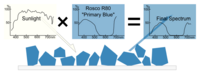 By 1945 more heat-tolerant and self-extinguishing acetate-based through-dyed materials were being manufactured (marketed as Chromoid then Cinemoid by Strand Electric). In the U.S., Roscolene (acetate) was also developed to deal with these higher output light sources. Though cheaper, the acetate filters fell out of favor with professional organizations since they could not withstand the higher temperatures produced by the tungsten halogen lamps that came into widespread use in the late 1960s. The acetate-based material was replaced by polycarbonates like Roscolar (mylar polycarbonate) and polyester-based filters. These materials have superior heat tolerance when compared to acetate-based gels. Many were transparent film with a surface coating. The first dyed polyester gels were introduced by Berkey Colortran in 1969 as Gelatran, the original deep-dyed polyester.[3] The Gelatran process is still used today to produce GAMColor (100% of the line) and Roscolux (about 30% of the line).[4] Other color manufacturers, such as Lee Filters and Apollo Design Technology, use a surface applied dye. (Roscolux is 70% polycarbonate and 30% deep-dyed polyester.)