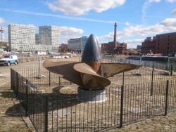 The bow is the most prominent portion of the wreck with the stern damaged by depth charges. Three of the four propellers were removed by Oceaneering International in 1982 for display though one was melted down. Expeditions to Lusitania have shown that the ship has deteriorated much faster than Titanic has, being in a depth of 305 feet (93 m) of water. When contrasted with her contemporary, Titanic (resting at a depth of 12,500 feet (3,800 m)), Lusitania appears in a much more deteriorated state due to the presence of fishing nets lying on the wreckage, the blasting of the wreck with depth charges and multiple salvage operations. As a result, the wreck is unstable and may at some point completely collapse.[113] There has been recent academic commentary exploring the possibility of listing the wreck site as a World Heritage Site under the World Heritage Convention, although challenges remain in terms of ownership and preventing further deterioration of the wreck.[114]
