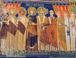 Byzantines availed themselves of several diplomatic practices. For example, embassies to the capital often stayed on for years. A member of other royal houses would routinely be requested to stay on in Constantinople as a potential hostage as well as a useful pawn in case political conditions changed. Another key practice was to overwhelm visitors by sumptuous displays.[130] According to Dimitri Obolensky, the preservation of the ancient civilisation in Europe could be accredited to the skill and resourcefulness of Byzantine diplomacy, which remains one of Byzantium's lasting contributions to the history of Europe.[136]