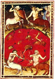 No. It isn't a goat. That's a centaur patrolling the river of boiling blood in a picture from a medieval manuscript of